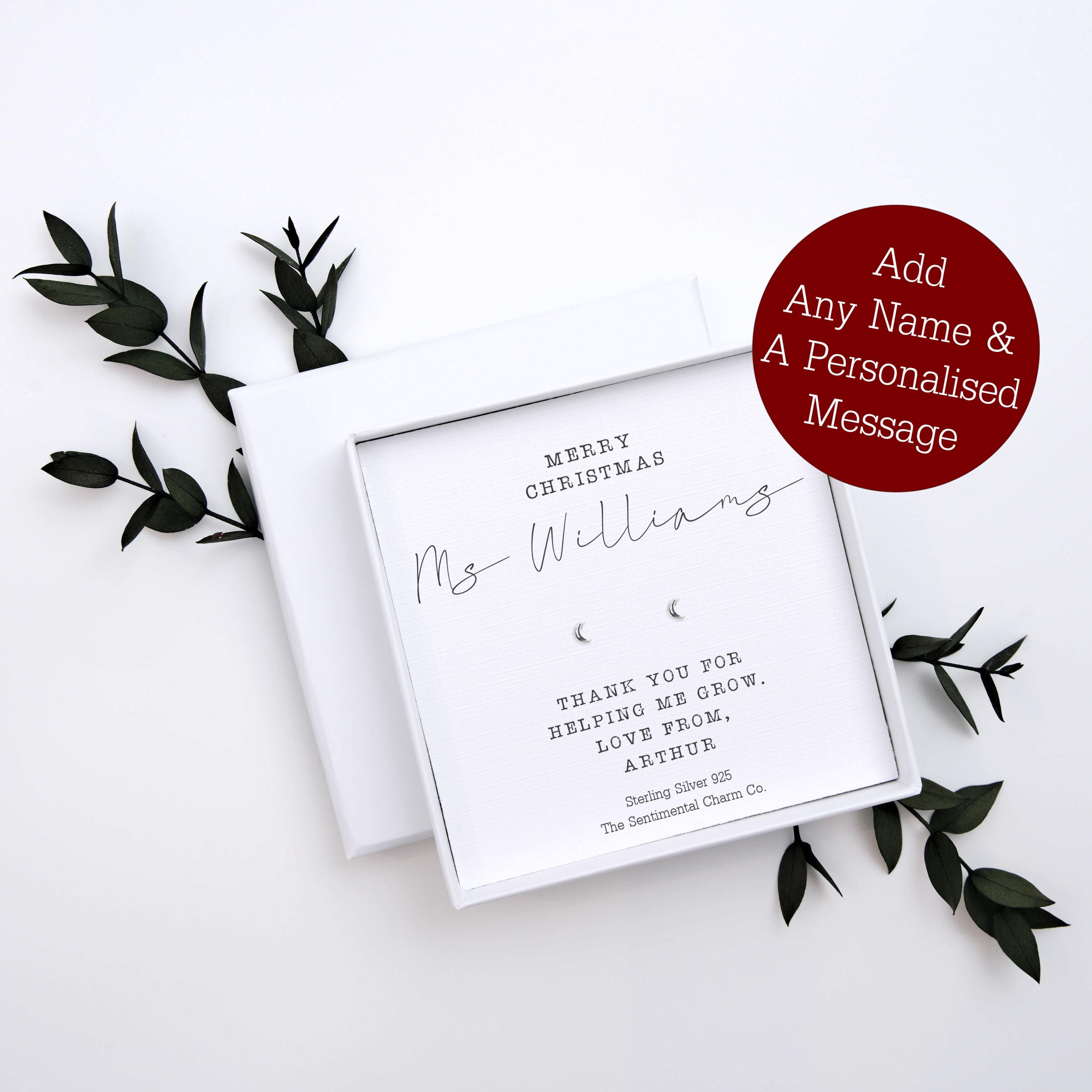 Christmas Teaching Assistant Gift – Personalised Sterling Silver 925 Stud Earrings – Merry Christmas TA Jewellery with Classroom Quote