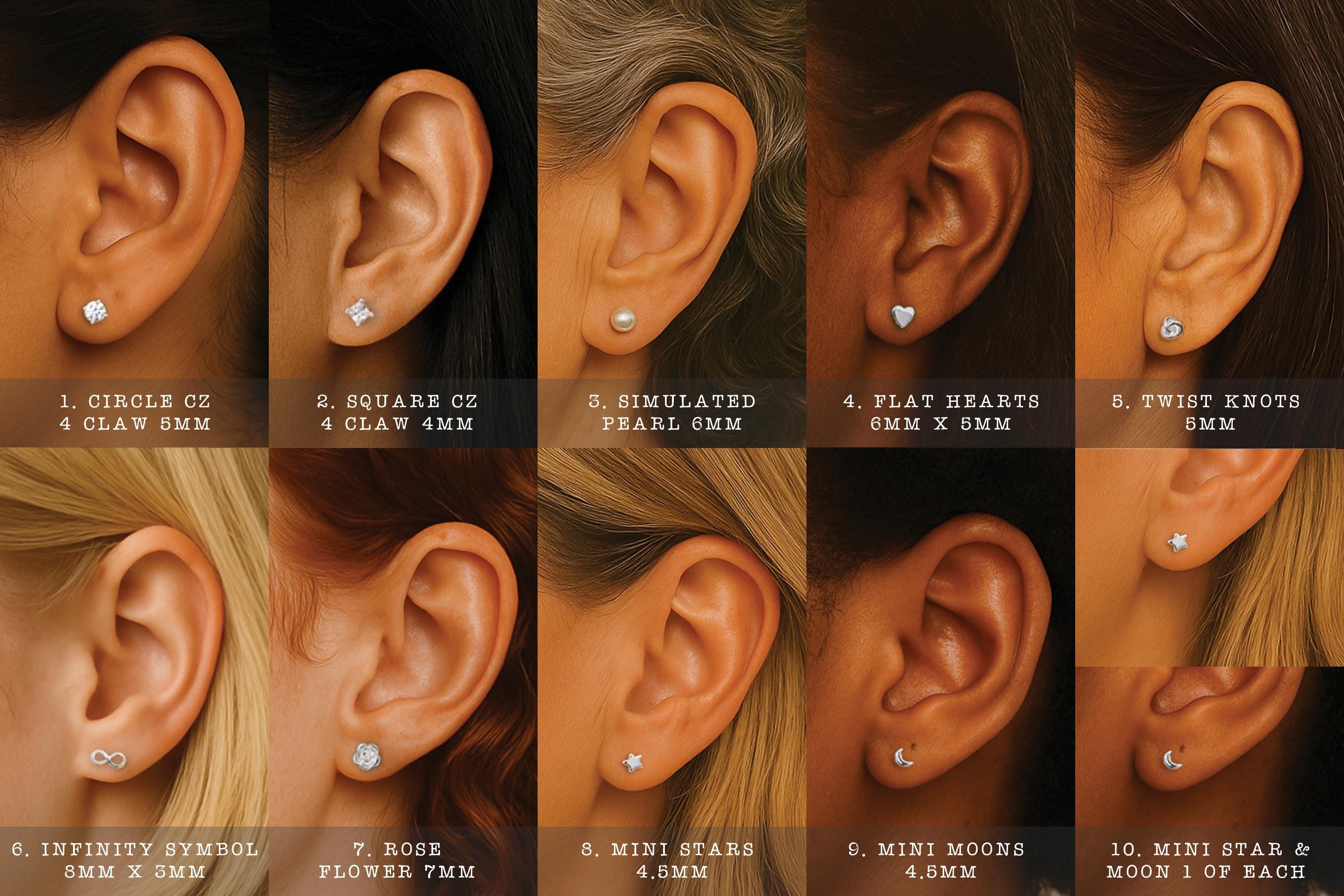 Choose from 1 of 10 simple, minimal and pretty stud designs including: